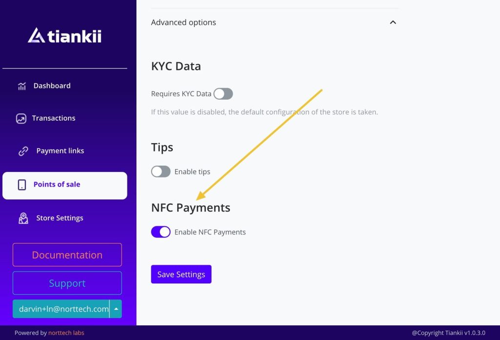 - Enable NFC payments: In the Tiankii POS app settings, activate the “Enable NFC Payments” option.