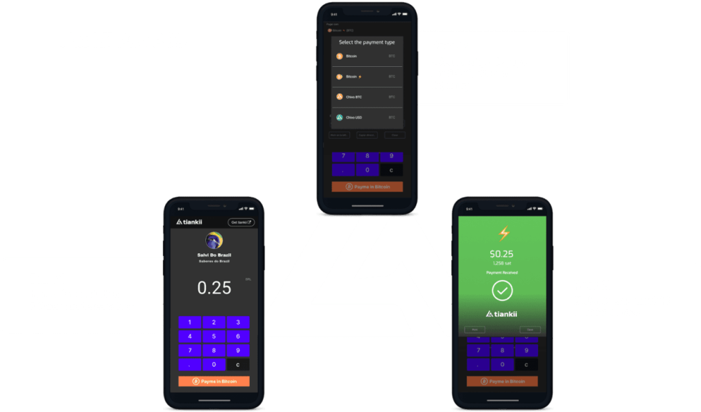 Tiankii supports Lightning, Bitcoin On chain and Chivo Network payments.