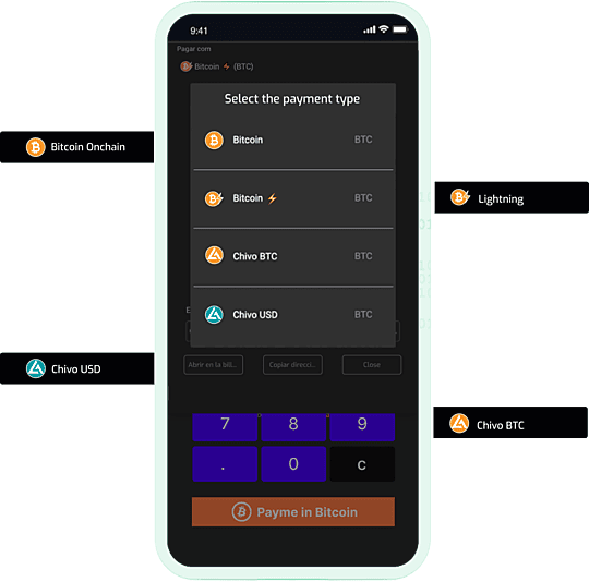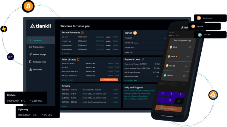 Tiankii supports payments in the Lightning, Bitcoin On chain and Chivo USD Network